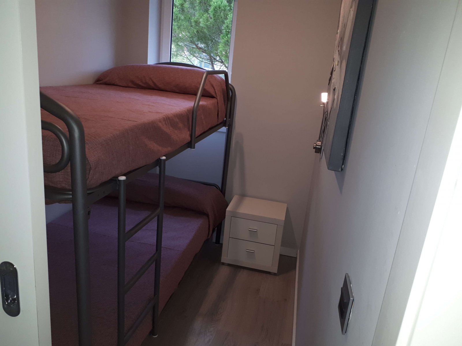 – Dues habitacions: una amb un llit doble i l’altra amb dos llits individuals.