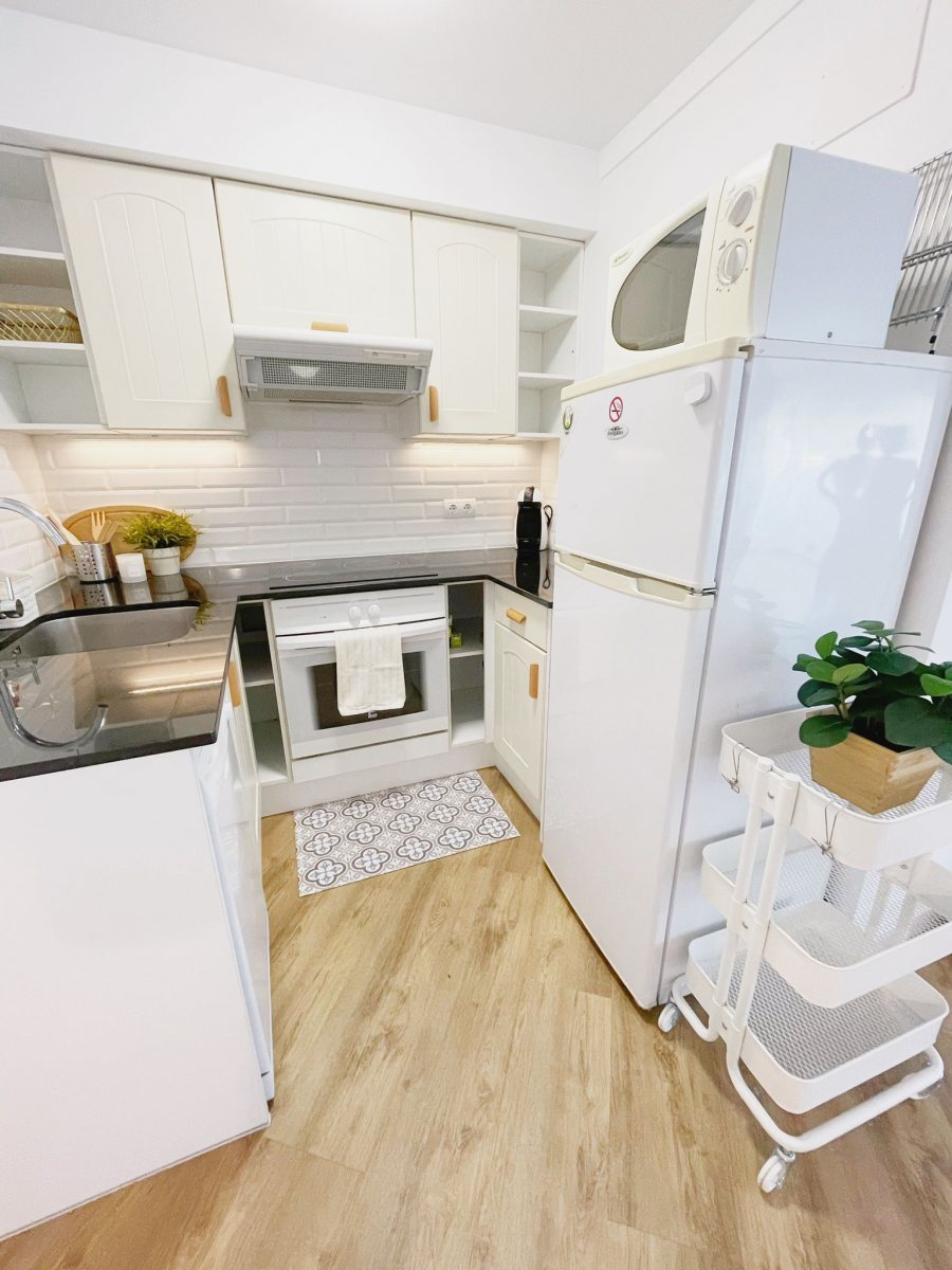 El nostre ampli apartament està equipat amb totes les comoditats modernes, com ara televisió espanyola, reproductor de DVD, microones, cuina completa, nevera/congelador i rentadora, per garantir una estada còmoda.